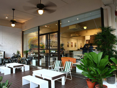VeganBurg is a restaurant that offers a 100% plant-based menu featuring burgers (cracked pepper mayo, smoky bbq, tangy tartar, creamy shrooms, char-grilled satay, Hawaiian teriyaki, mustang relish, paleo), sides (old school hotdog, franks, granny's comfort soup, seaweed fries, handmade spinach pops, salad bomb, rockin' broccoli), gourmet dips, organic brown rice ice cream, and drinks (organic colas, coffee, organic fair trade teas). Kiddie meals are available. Gluten-free and nut-free options are also offered. Items with onions are marked in the menu. Patties consist mainly of soy and mushroom, and are free of genetically modified ingredients. All menu items are Halal-friendly. Local produce are used whenever possible. Reservations are accepted. Takeaway is available. Delivery and catering services are also offered.