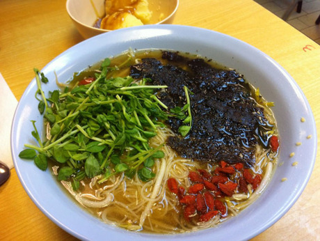 A vegetarian restaurant that serves Chinese cuisine. Vegan options are