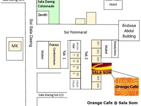 Orange Cafe is an all vegetarian cafe with vegan options, located inside Sala Som, a townhouse that provides health services. The cafe has two main menu, the Euro Vegetarian and the Thai Vegan menu. Walk-ins, take out, catering, and delivery services are provided. There is a function room available for private events. The cafe provides services good for groups and kids. There is an outdoor seating for those who prefer to dine in the open. Wifi is accessible. Payments are acceptable only by cash.